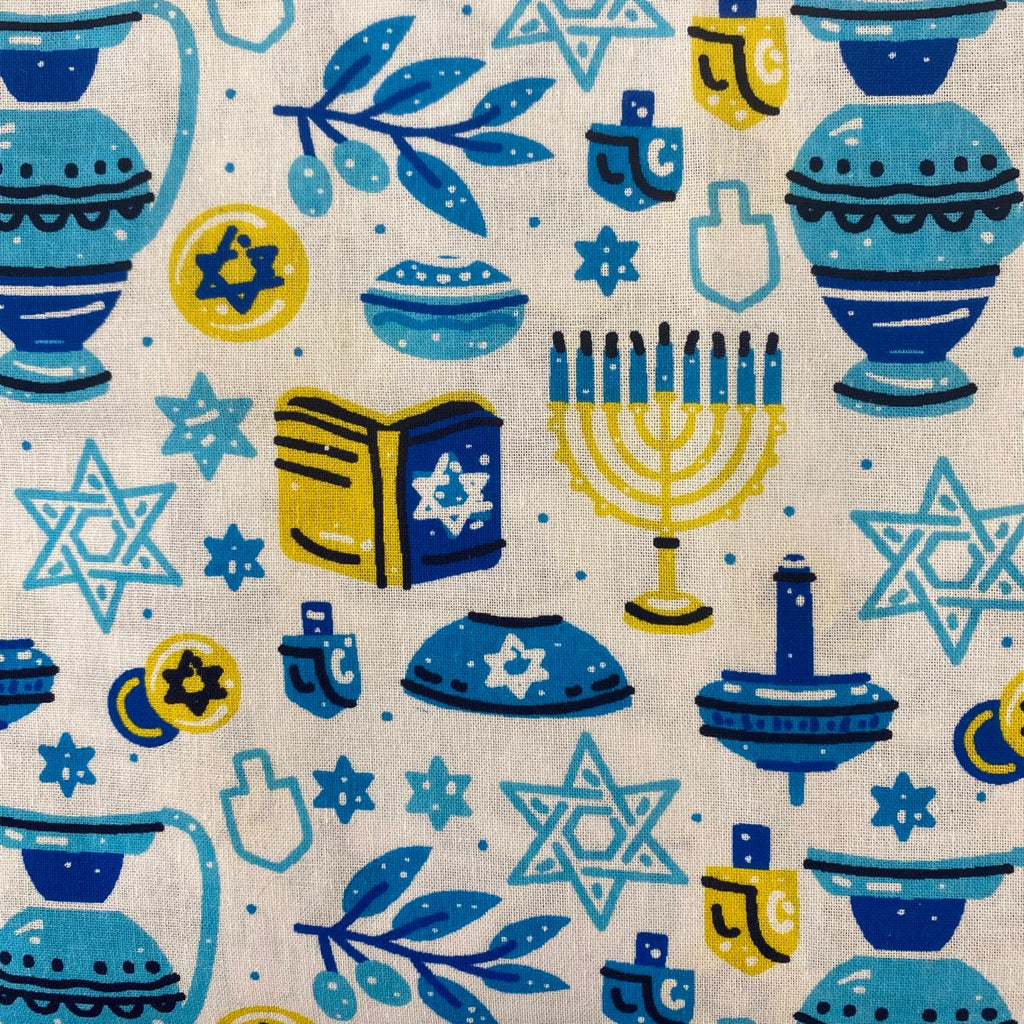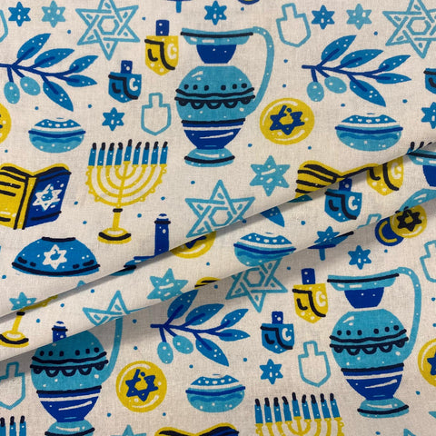 100% Cotton HANUKKAH DREIDELS AND MENORAHS - £8.50 Per Metre - Sold by Half Metre