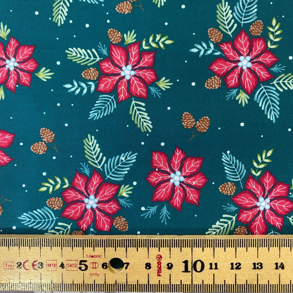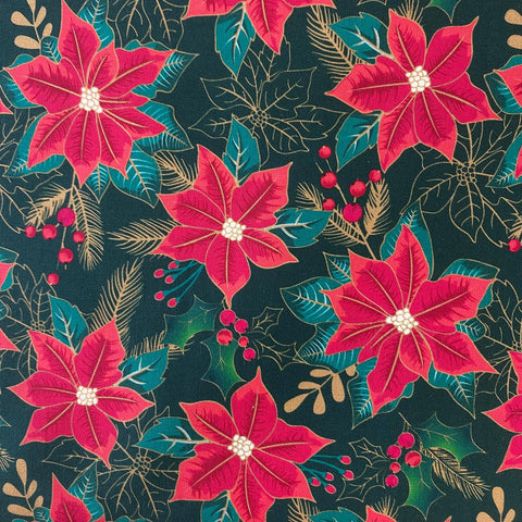 100% Craft Cotton- Christmas Poinsettia Designs - Select Design - £8.50 Per Metre - Sold by Half Metre