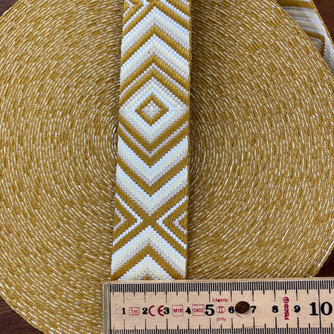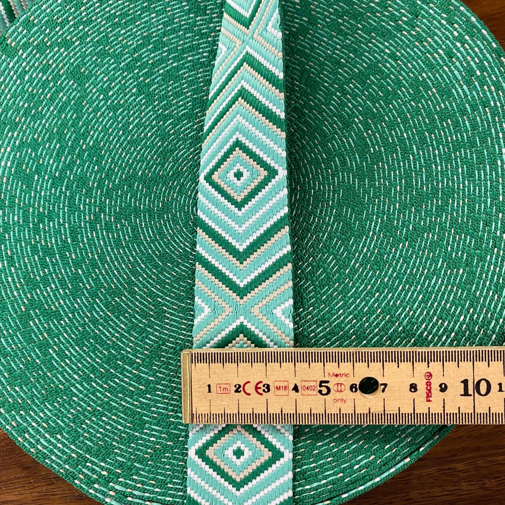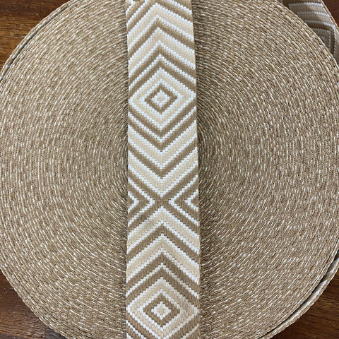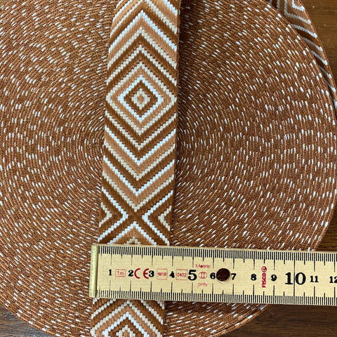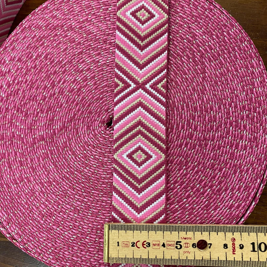 Geometric 4cm Wide Bag Strapping in 5 Colours Green, Pink, Brown, Gold and Beige