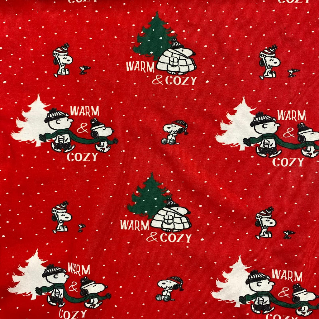 Cotton Jersey - PEANUTS SNOOPY WARM AND COSY CHRISTMAS - £10.00 Per Metre - Sold By Half Metre